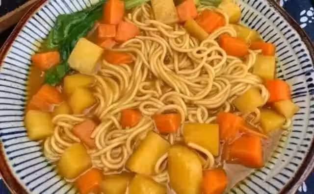 土豆1個,胡蘿蔔1個,麵條1人份,青菜2顆,咖喱2-3塊。