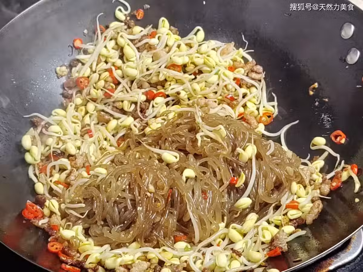 黃豆芽炒粉條不坨不粘鍋的技巧,方法很簡單,口感好,味道好!