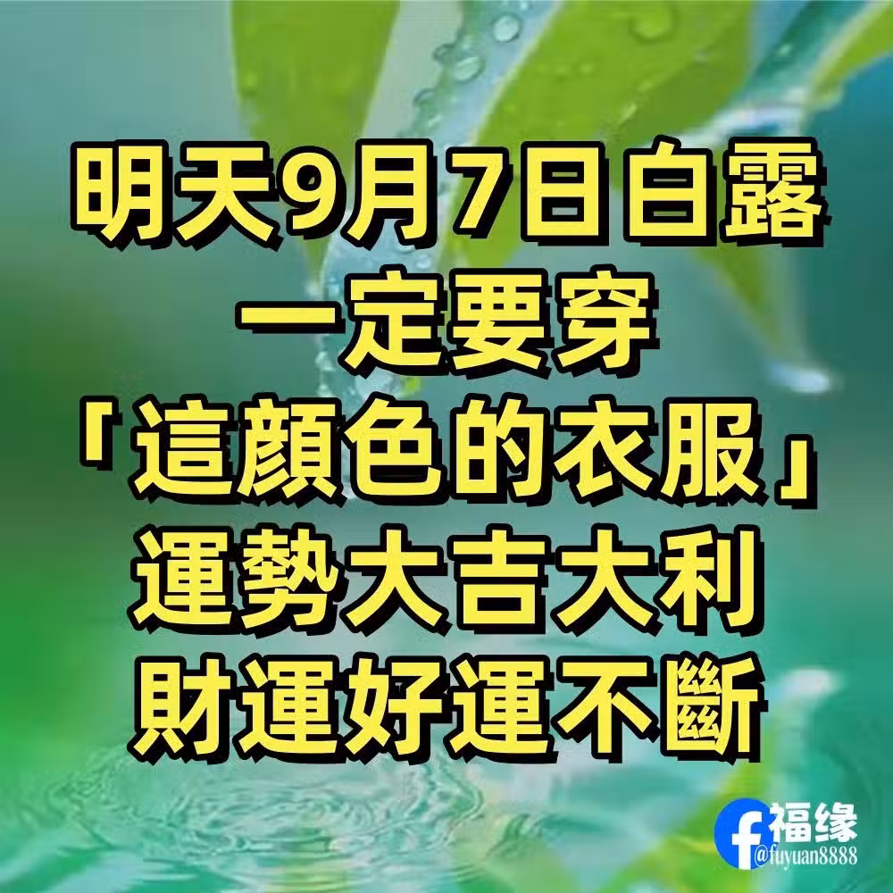 今天白露,一定要穿「這個顏色的衣服」運勢大吉大利, 財運好運不斷!