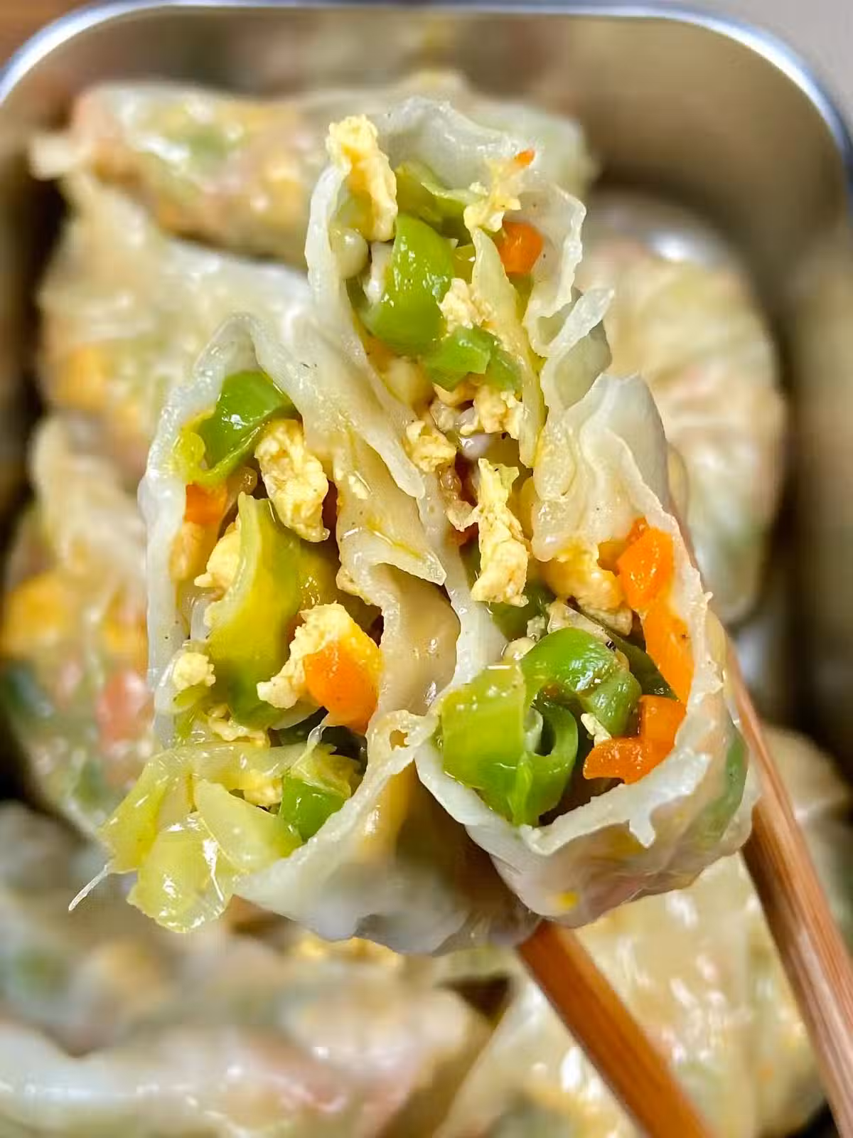 ====================================================================================🥟食材:雞蛋2、包菜、豆角、胡蘿蔔、餃子皮