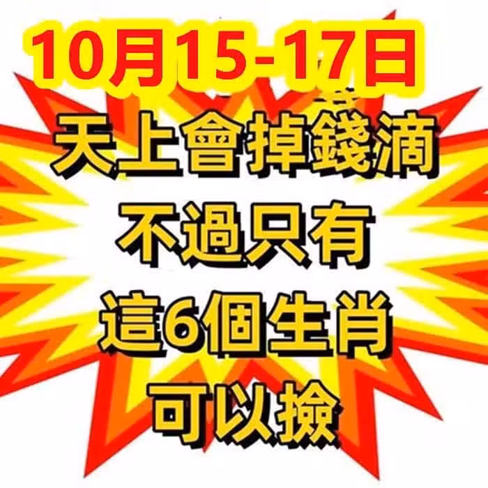 10月15 到 17日天上會掉錢滴,不過只有這6個生肖可以撿