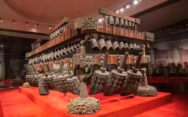 戰國早期,由六十五件青銅編鐘組成的龐大樂器,音域跨五個半八度,十二個半音齊備。