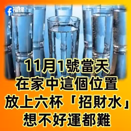 11月1號當天,在家中這個位置,放上六杯「招財水」想不好運都難!