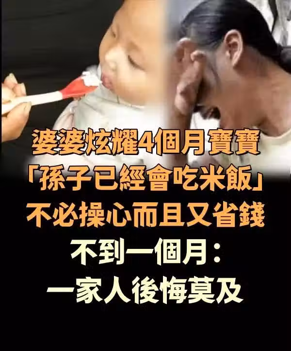 聽說別的孩子5個月吃輔食,奶奶炫耀「4個月孫子會吃米飯」