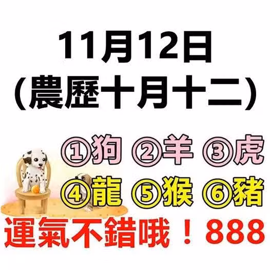 小運播報:2024年11月12日,星期二,農曆十月十二