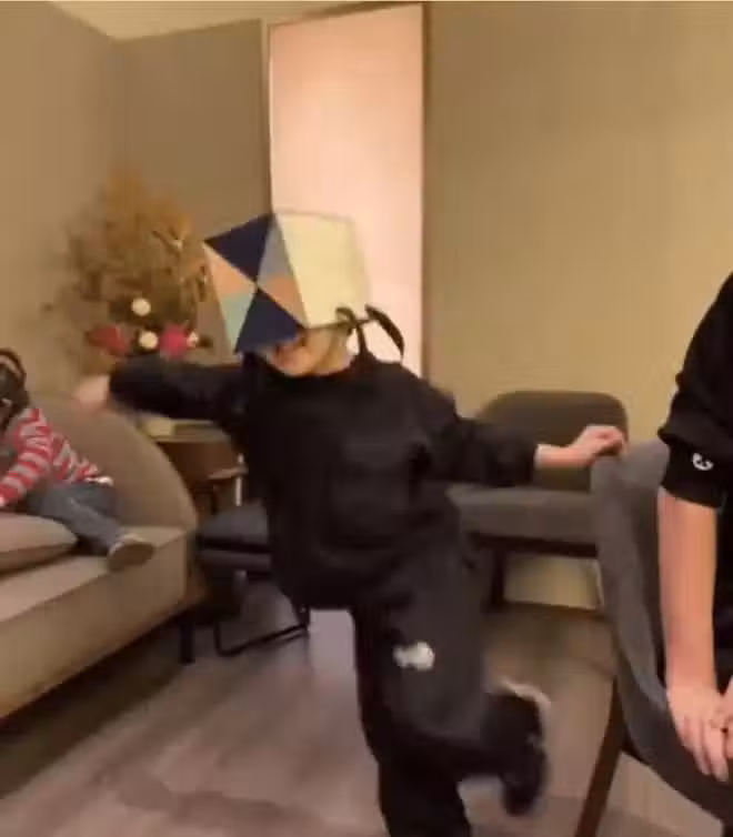 萌翻!全紅嬋和許昕一家上海聚會,許昕兒子頭罩禮盒跳舞小紅笑抽了
