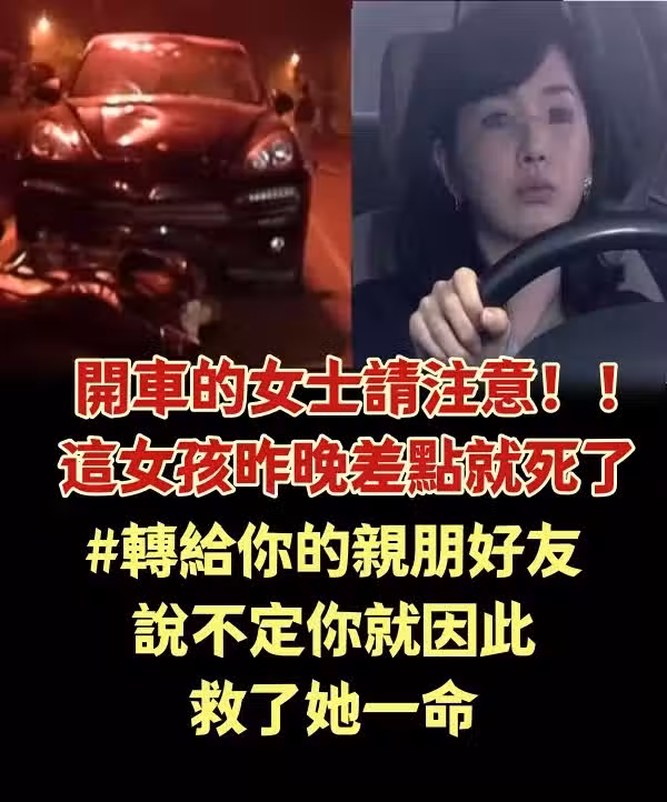 開車的女士請注意!!這女孩昨晚差點就死了..(轉給你的親朋好友,說不定你就因此救了她一命)