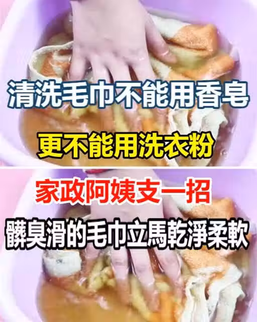 清洗毛巾不能用香皂,更不能用洗衣粉,家政阿姨支一招,髒臭滑的毛巾立馬乾凈柔軟~