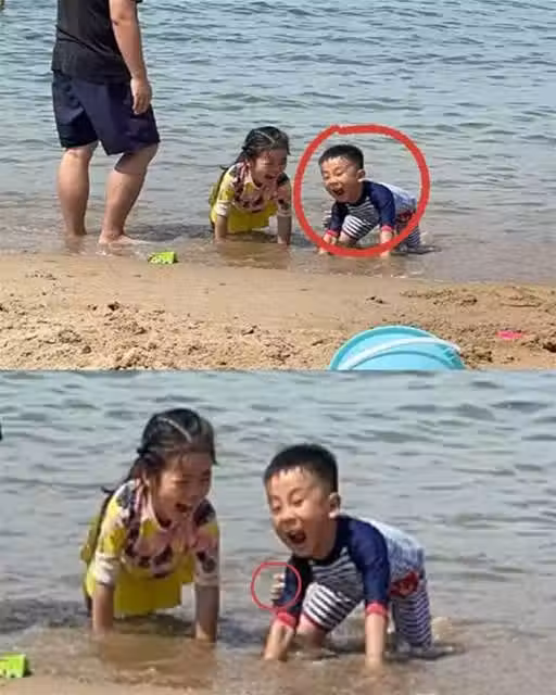 這位媽媽帶著孩子和朋友們到海邊遊玩,原本以為這是個溫馨有趣的回憶,但當她今天翻出這張照片時,卻被照片中的「怪異」場景嚇得不輕。