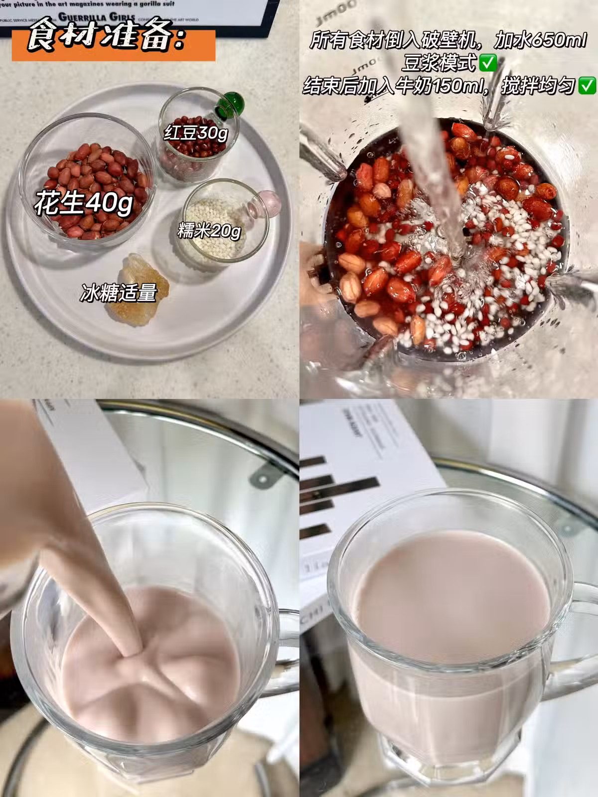 📝食材:花生40g、紅豆30g、糯米20g、牛奶150ml、冰糖適量