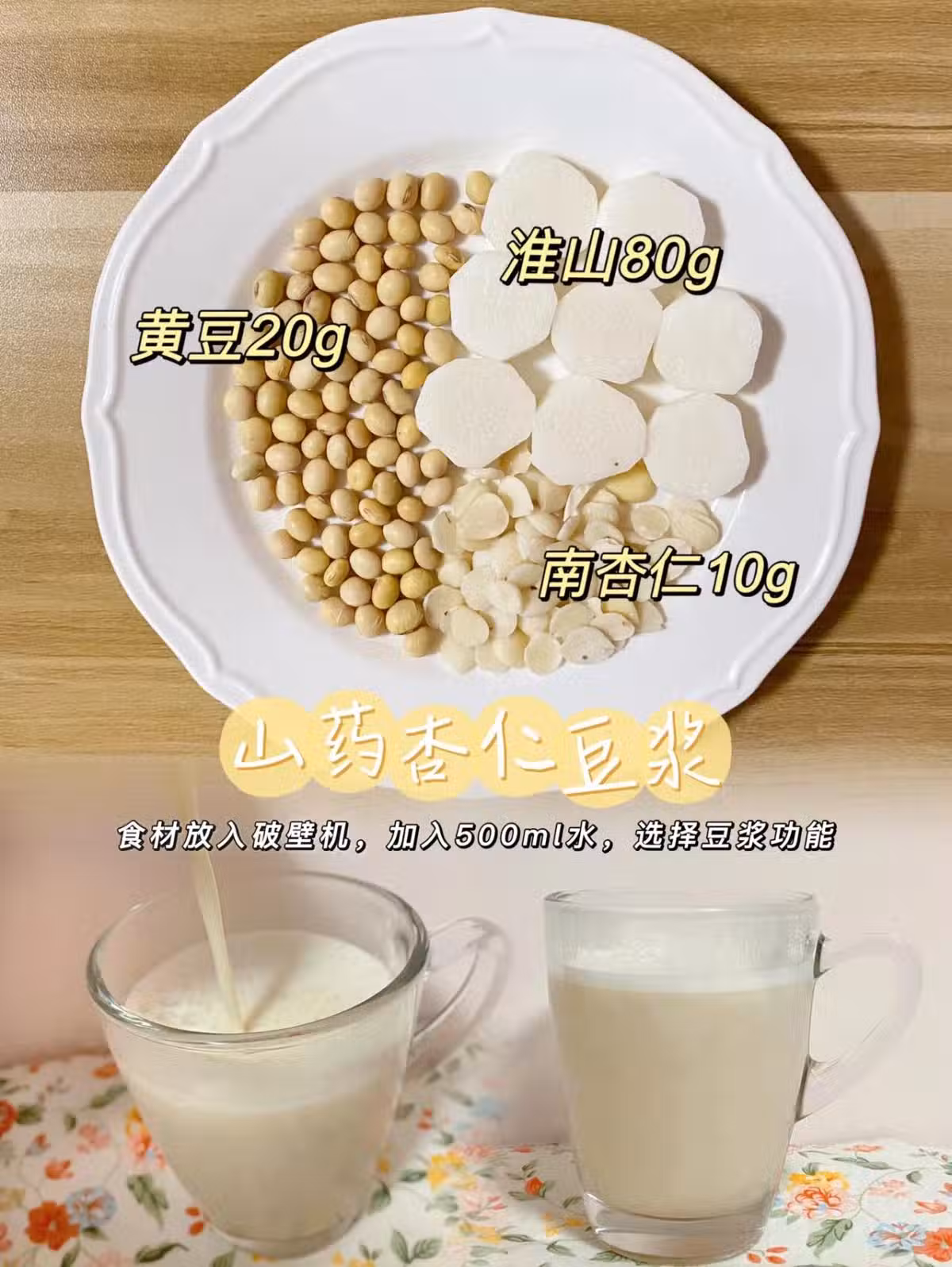 山藥健脾養胃,南杏仁美白養膚,黃豆調節內分泌、富含植物蛋白質