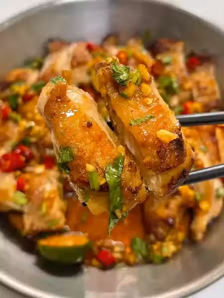 搭配上有青檸的清香,還有醬料的香味,酸酸辣辣的,真的絕了。