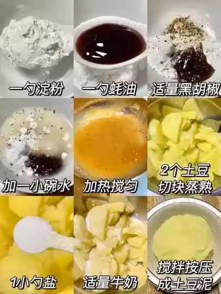 👉🏻土豆切塊上鍋蒸熟,加1小勺鹽➕適量牛奶,攪拌成土豆泥