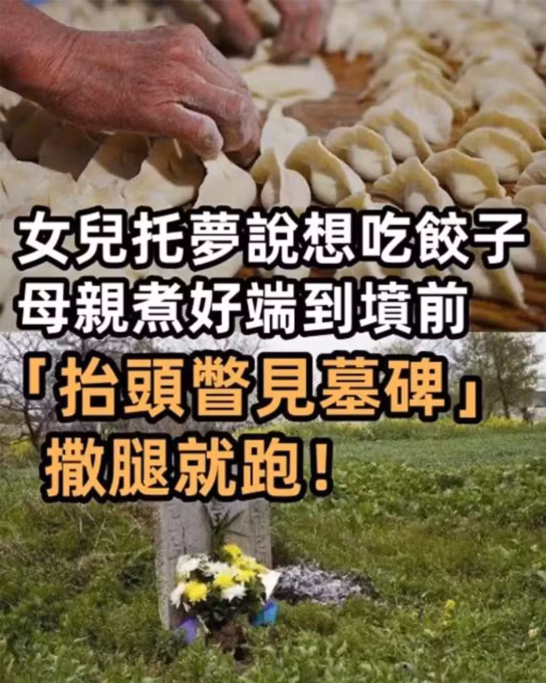 女兒託夢說想吃餃子,母親煮好端到墳前,抬頭瞥見墓碑,撒腿就跑~