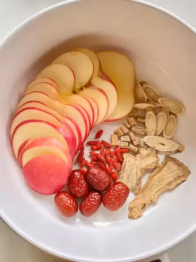 其中的食材是紅棗、黃芪、黨參和當歸這些經典食材,對女孩子都是特別友好的!