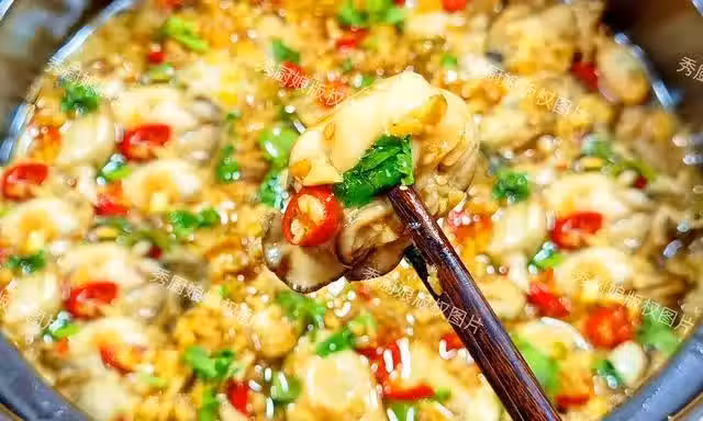 食材準備:生蚝:6隻,白菜:300克,龍口粉絲:50克,薑絲、香菜:適量,蒜片:適量,雞湯:500毫升,鹽、食用油:適量