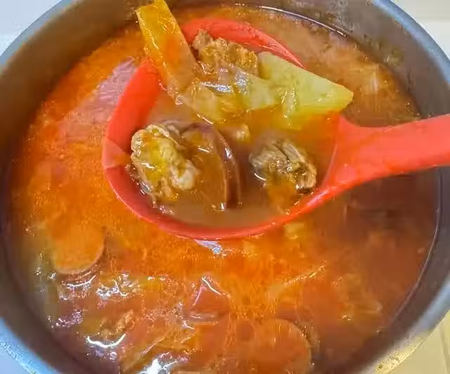 食材:牛肉(肋條)、紅腸、番茄醬、洋蔥、捲心菜、土豆、大蒜。非必選食材有胡蘿蔔、西芹、黃油、黑胡椒。