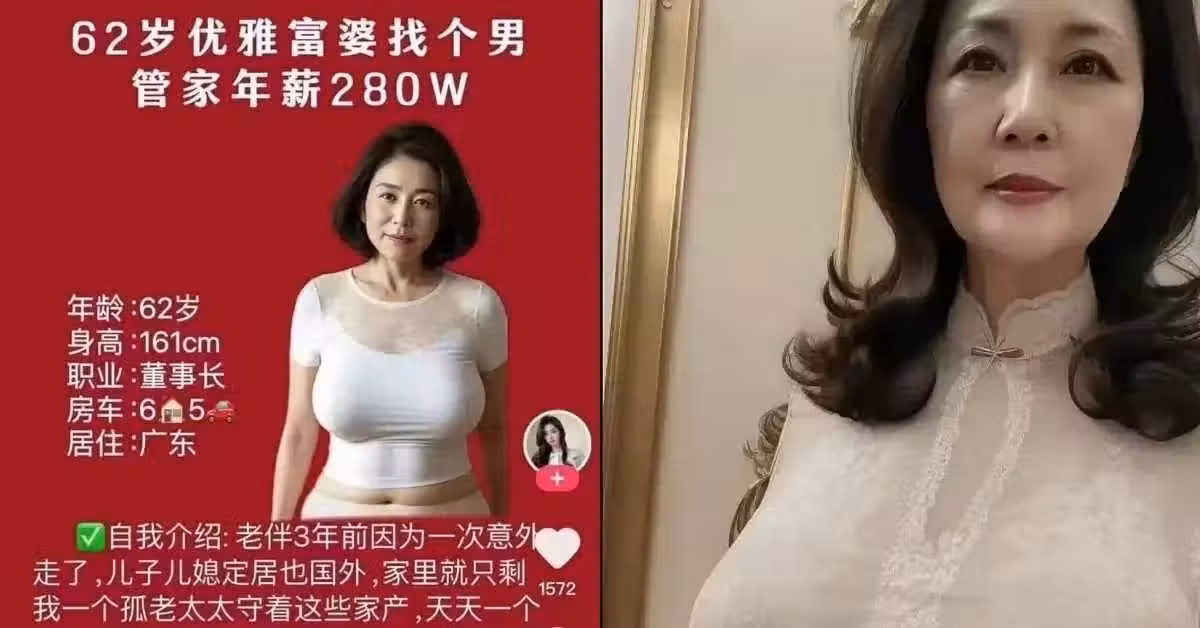網傳 62 歲優雅富婆找男管家,提供千萬年薪