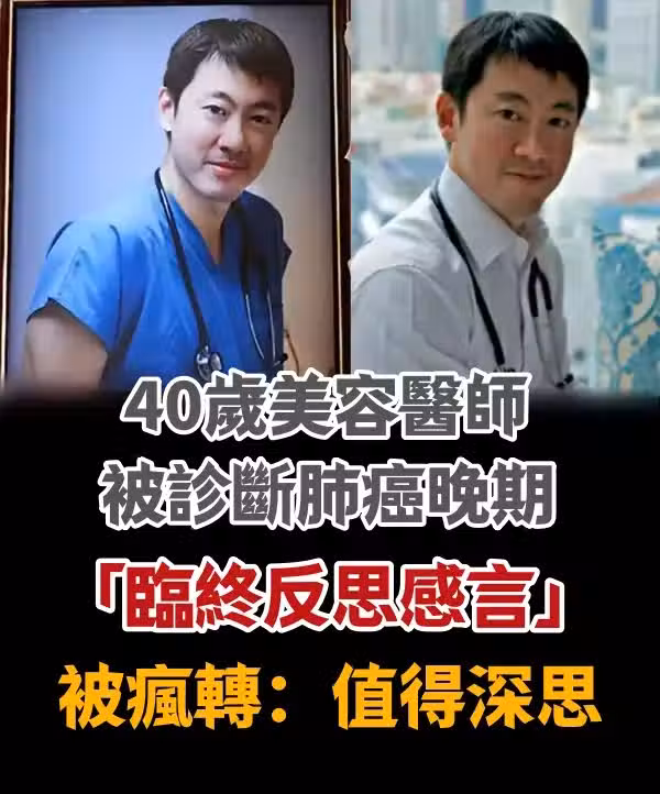 40歲美容醫師「被診斷肺癌晚期」不到半年逝世「臨終反思感言」被瘋轉:值得深思