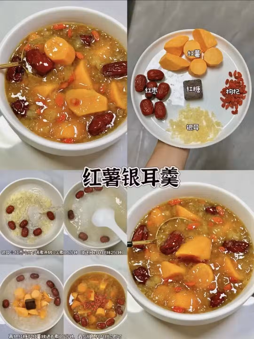 1️⃣2️⃣蘋果雞蛋 桂圓蘋果雞蛋紅棗,宛如秋韻良方。桂圓綿甜,蘋果清脆,紅棗香濃,雞蛋滑嫩。諸味相和,慢火細燉,金湯蘊養。淺嘗,暖潤甜香縈繞,身心俱暢,仿若秋陽親撫。於涼秋之際,此飲恰似溫情相伴,慰藉寂寥,遞來滿滿幸福滋味。