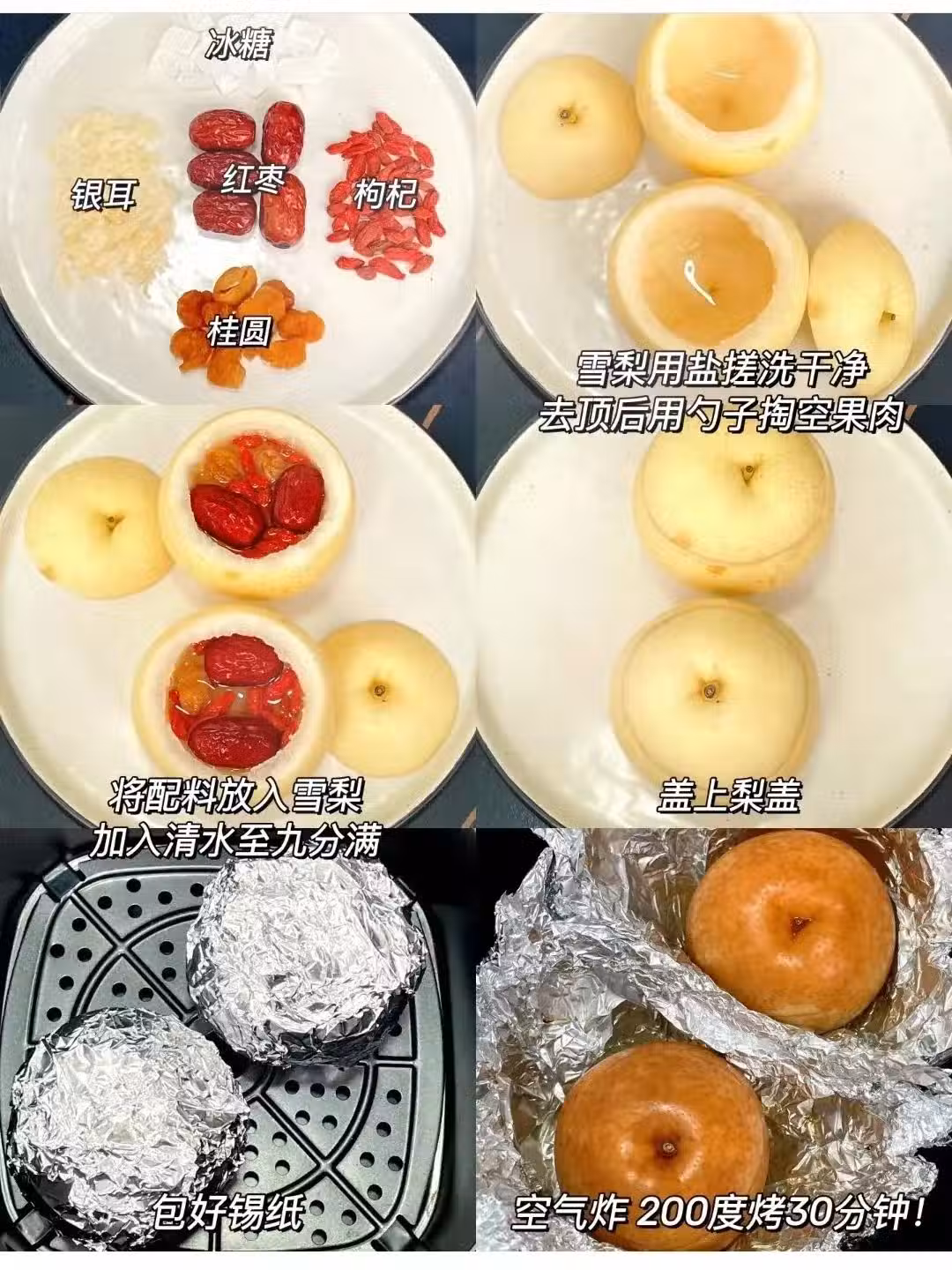 Hello寶貝們!是不是一到秋冬季節,喉嚨就不舒服,乾咳不斷,感覺肺都要咳出來了? 別怕,今天就給你們分享一個我的有效的中醫小妙招——花烤雪梨🍐!