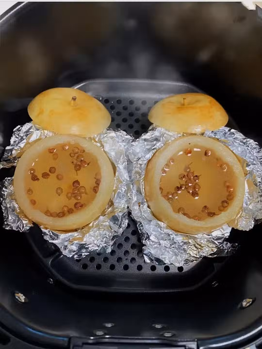 3、蓋上梨蓋子,用錫紙包住,放入空氣炸鍋200度烤20分鐘即可。