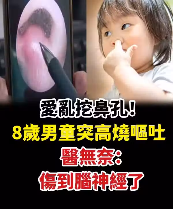 有一名8歲男童,亂挖鼻孔流鼻血,後來竟然導致顱內感染、腦神經受損,嚴重的話恐危及生命!