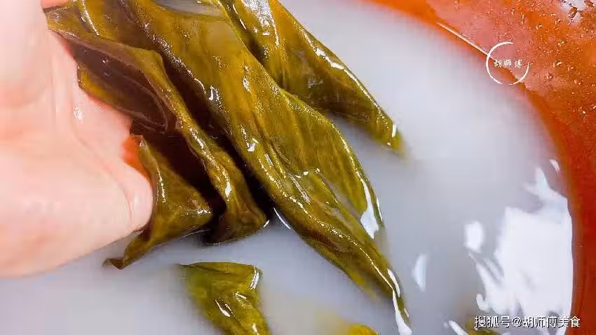 然後反覆地搓洗海帶,將海帶上的髒東西全部去除,接著用流水將海帶沖洗乾淨即可備用。