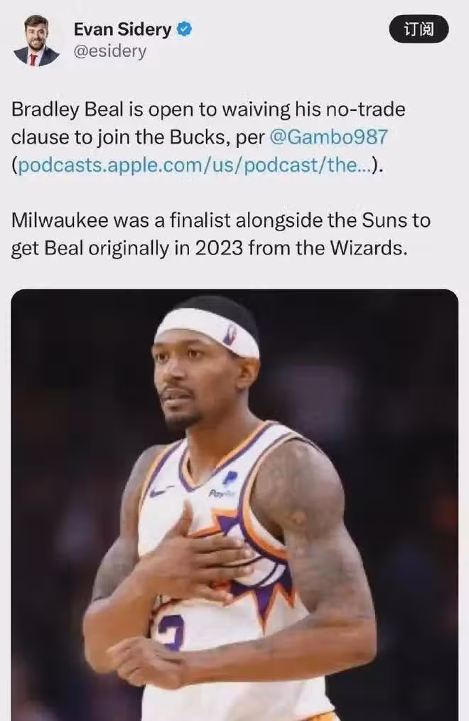 值得一提的是,23年夏天雄鹿就有機會從奇才得到比爾,但後者選擇了拒絕,轉頭加盟了太陽。
