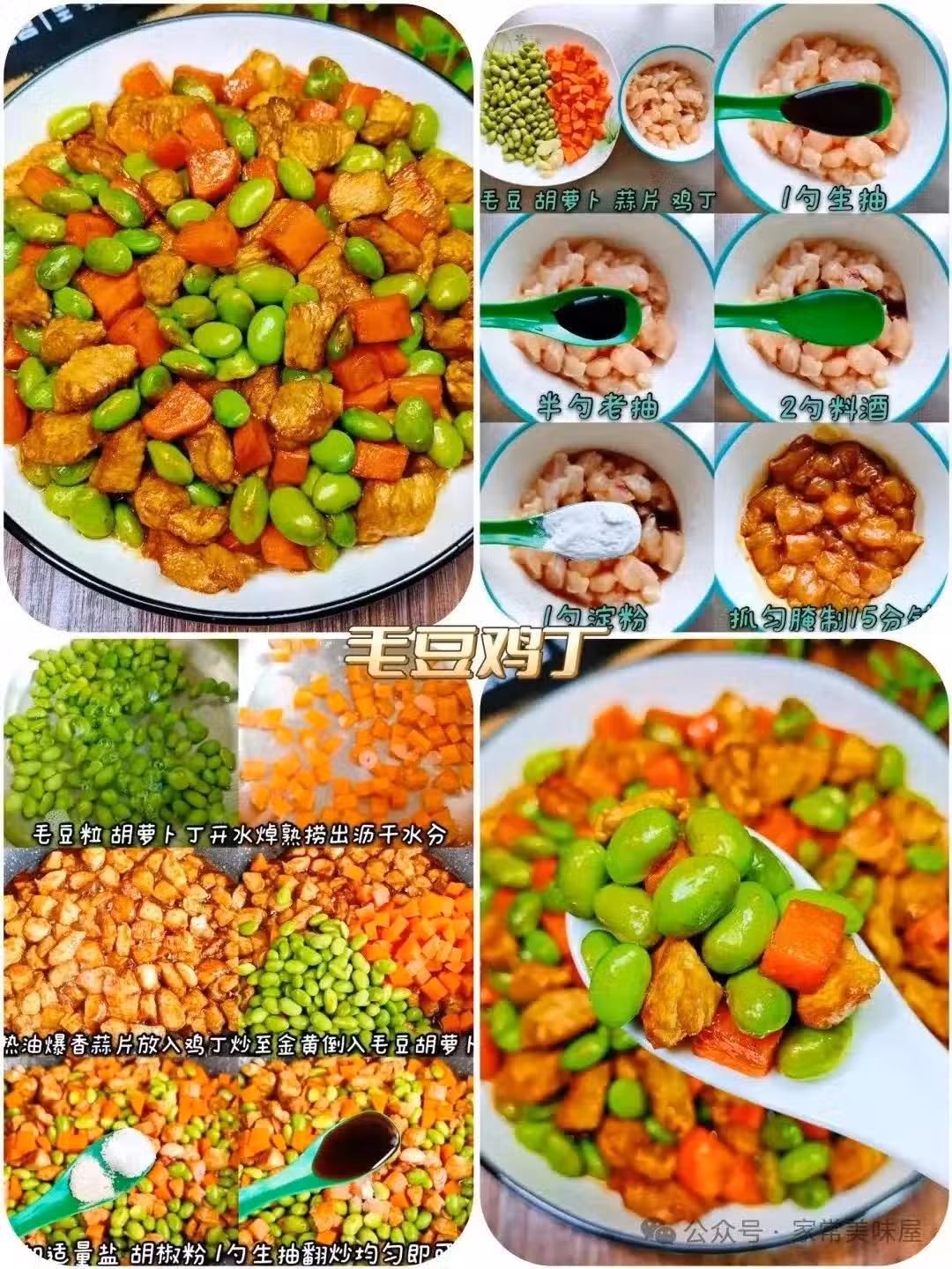 步驟三:加入毛豆繼續翻炒,調味後炒至雞丁熟透。
