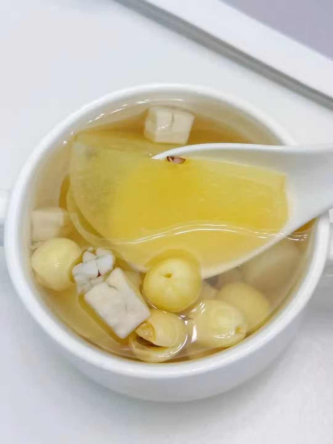 蘋果1個,山藥20g,茯苓10g,蓮子10g ,芡實10g ⭐具體做法: 所有食材加800ml水煮30分鐘即可~