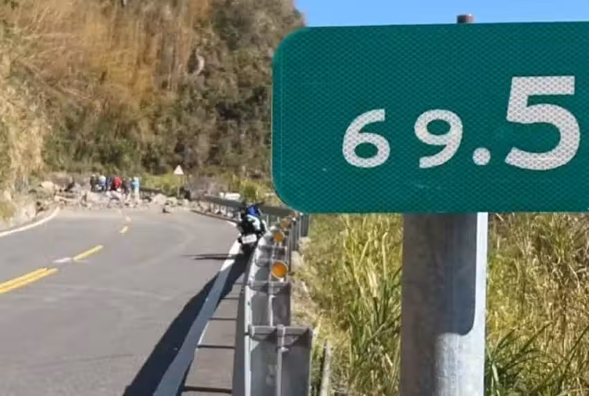 ▲嘉義今日10時許發生地震,阿里山公路出現落石,一度雙向中斷,緊急搶通中。
