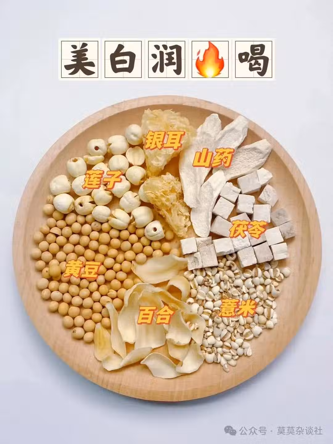 功效: 這款豆漿是美白養顏的全能飲品,薏仁和銀耳祛濕潤膚,山藥和茯苓健脾,百合和蓮子安神,黃豆提供植物蛋白,滋養皮膚的同時調理身體。