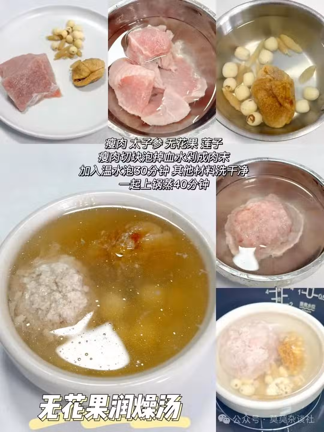 味道及功效:太子參的甘甜、無花果的清香、蓮子的粉糯口感,這碗潤燥湯簡直就是秋冬的治癒神器。太子參益氣健脾,無花果潤肺生津,蓮子養心安神,非常適合身體疲憊、睡眠質量差的朋友。