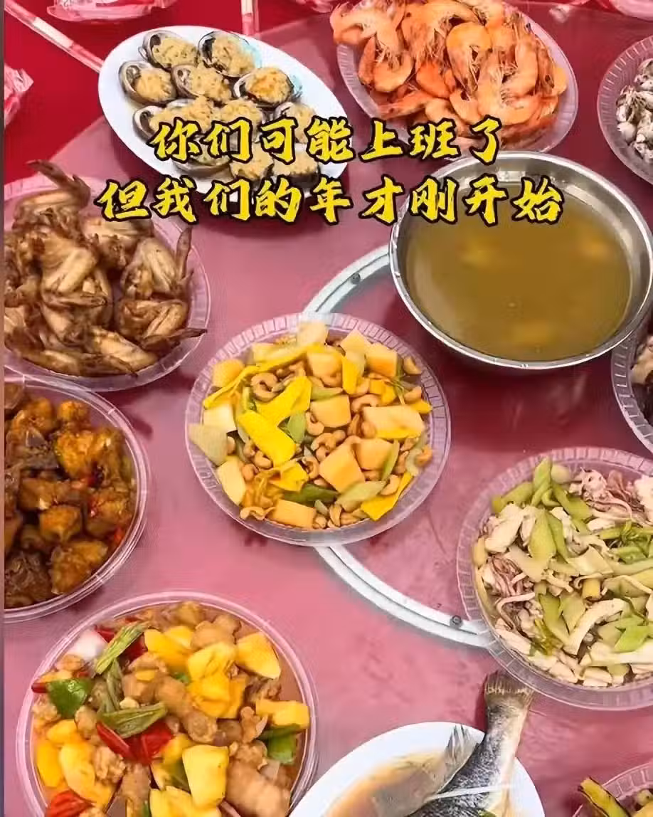 看全紅嬋家裡的年例,擺了十幾圍、一桌18個菜,是不是很有排面啊!雞鴨魚肉應有盡有,還有好喝的湯。