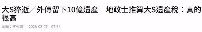 外傳大S有十億的遺產,因為涉及到隱私,地政的人以大S台北的房產價值約六億估算遺產稅。