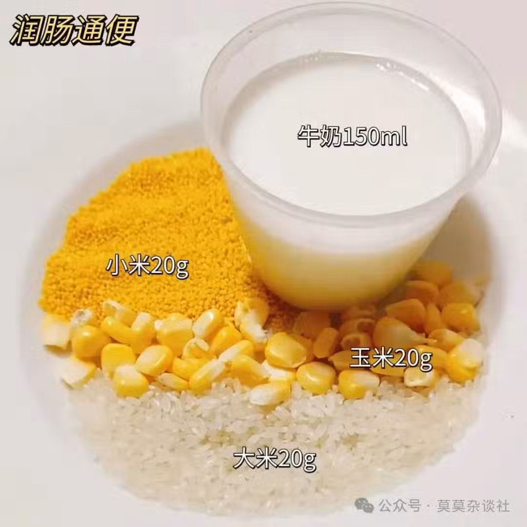 食材:玉米20g | 大米20g | 小米20g | 牛奶150ml