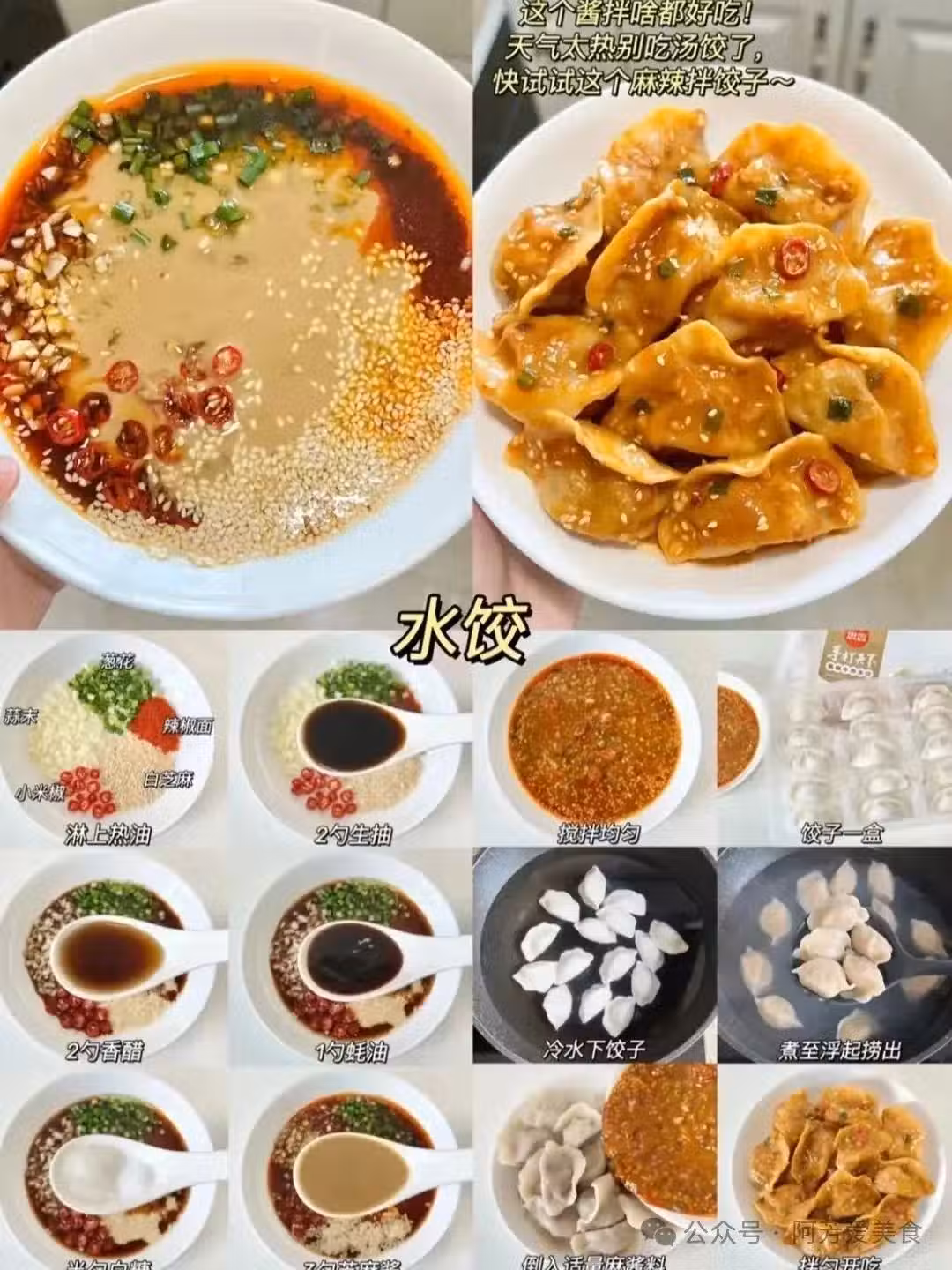 水餃醬料,裡面一定要加生抽香醋這兩種。煮好的水將再粘在醬汁上,吃上以後非常的有味道,還非常的好吃,吃了一個還想繼續吃。
