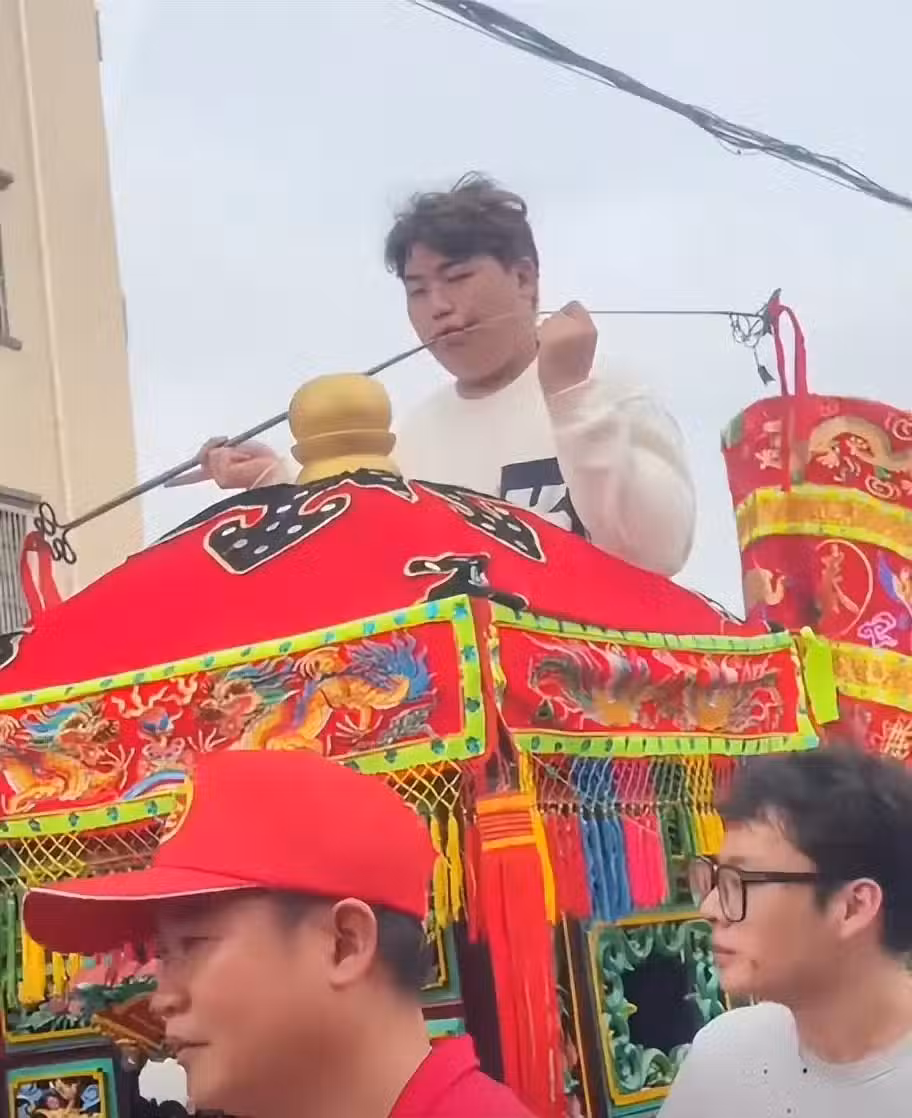 全紅嬋哥哥全進華在今年邁合村游神活動中成為了絕對主角,因為他表演了穿令箭。穿令箭又叫穿腮、穿面頰,是元宵節期間,湛江各地鄉村巡遊表演的一項絕技。對於參與者來說需要不小的勇氣。
