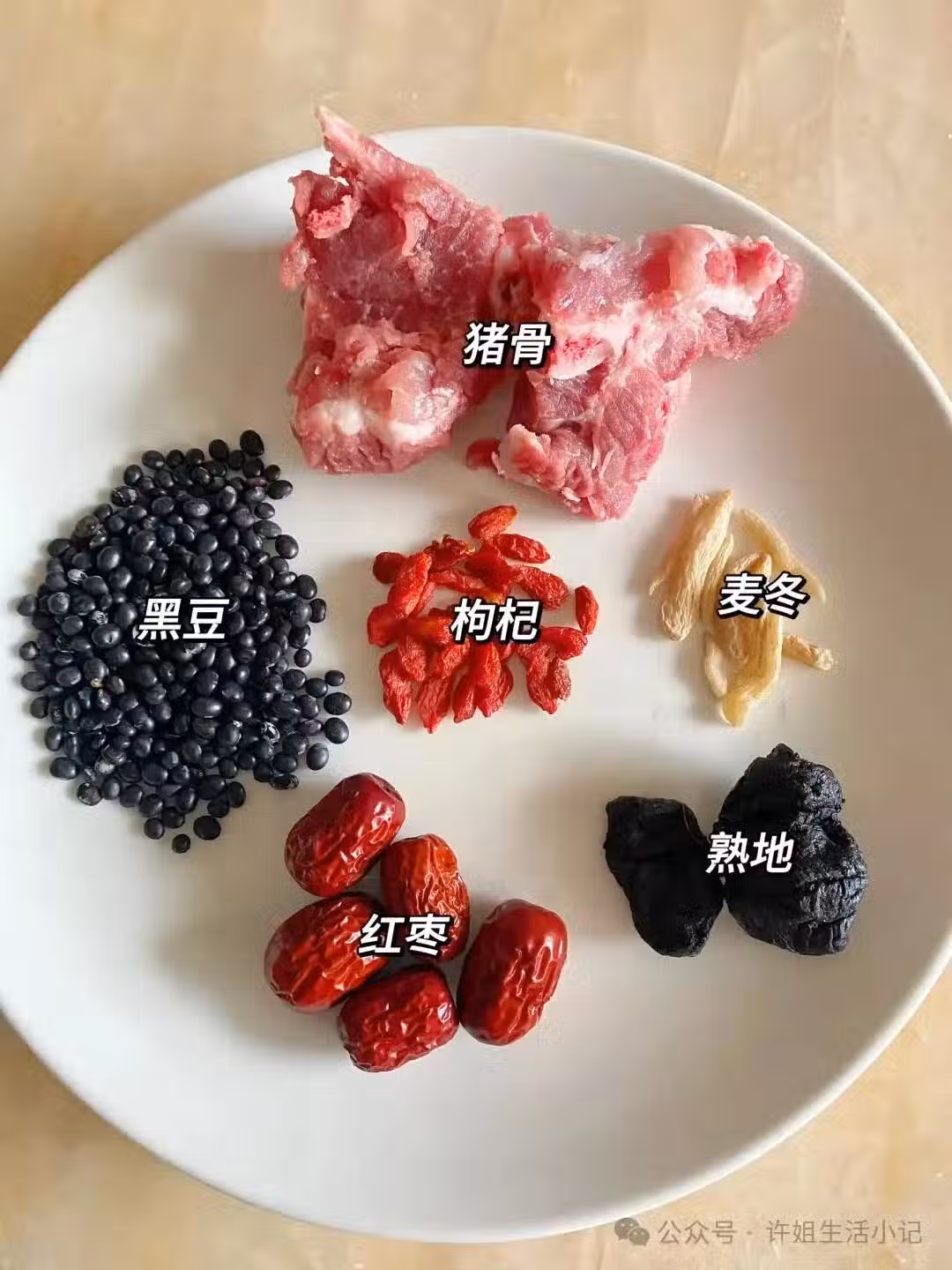 豬骨焯水,所有食材清洗乾淨倒入燉鍋燉兩小時,出鍋前撒入枸杞加適量鹽調味即可