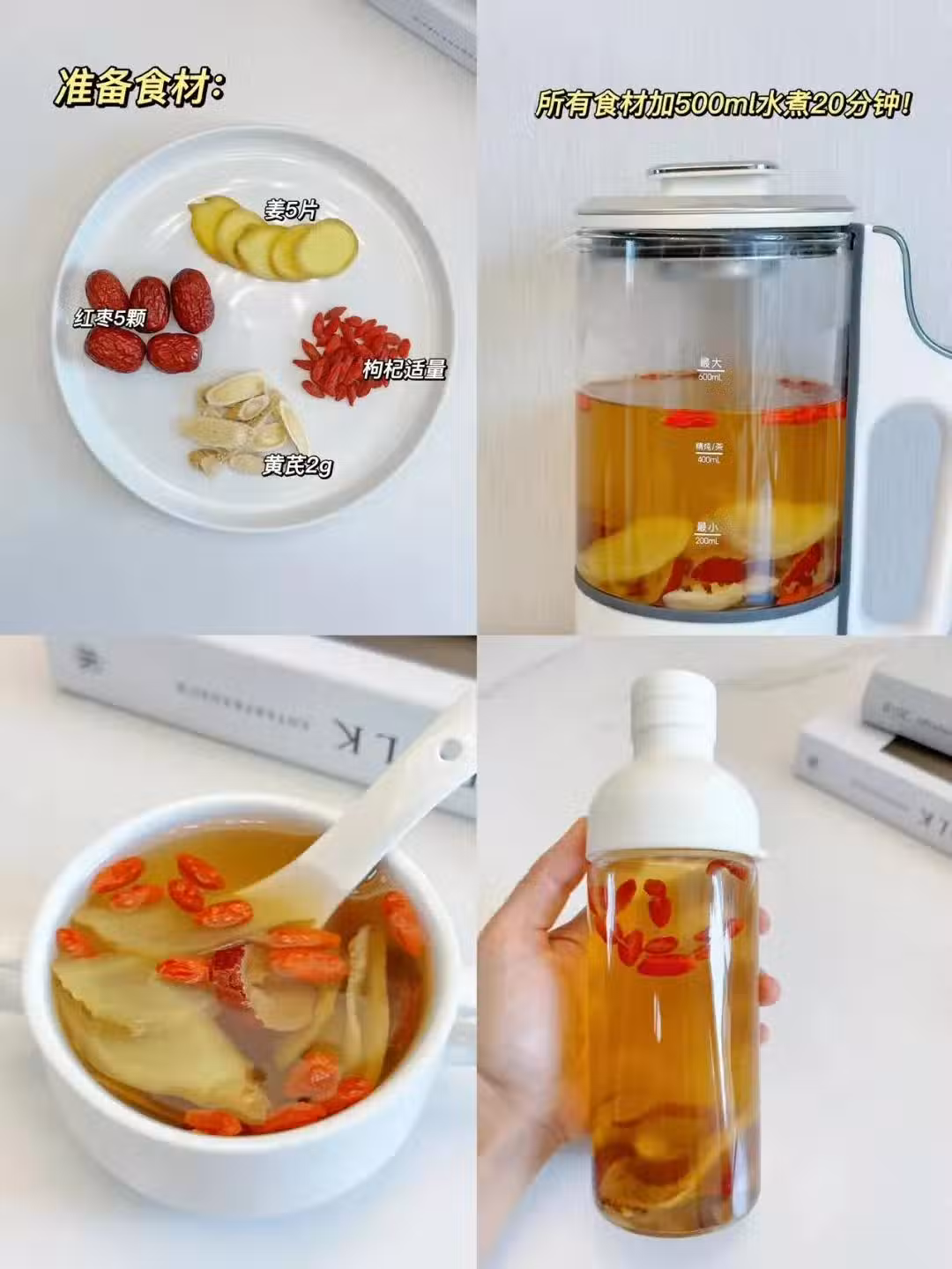姜5片 紅棗5顆 黃芪3g 枸杞適量