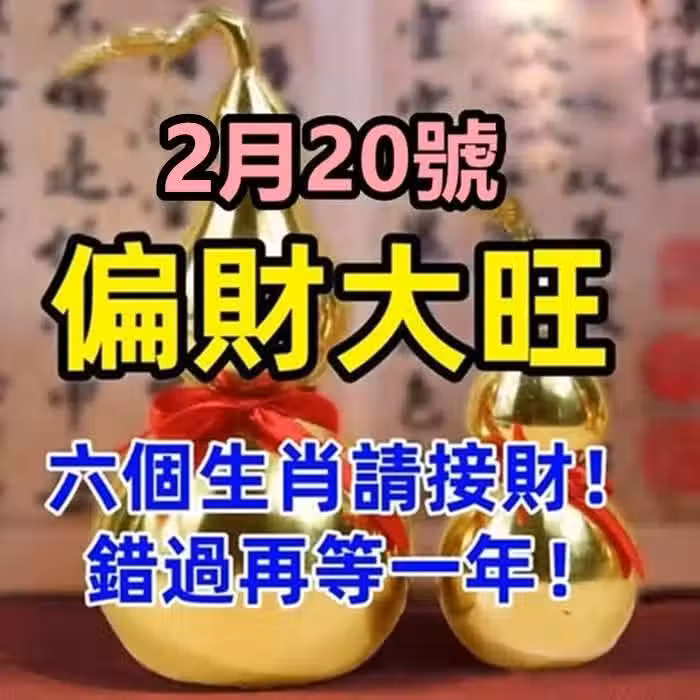 2月20號偏財大旺,六個生肖請接財!錯過再等一年!
