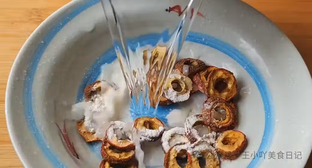 清洗山楂:首先,將30克山楂倒入一個大盆中,加入1大勺麵粉和足夠的清水,用手輕輕抓洗。麵粉的吸附力能幫助去除山楂表面的灰塵和雜質。