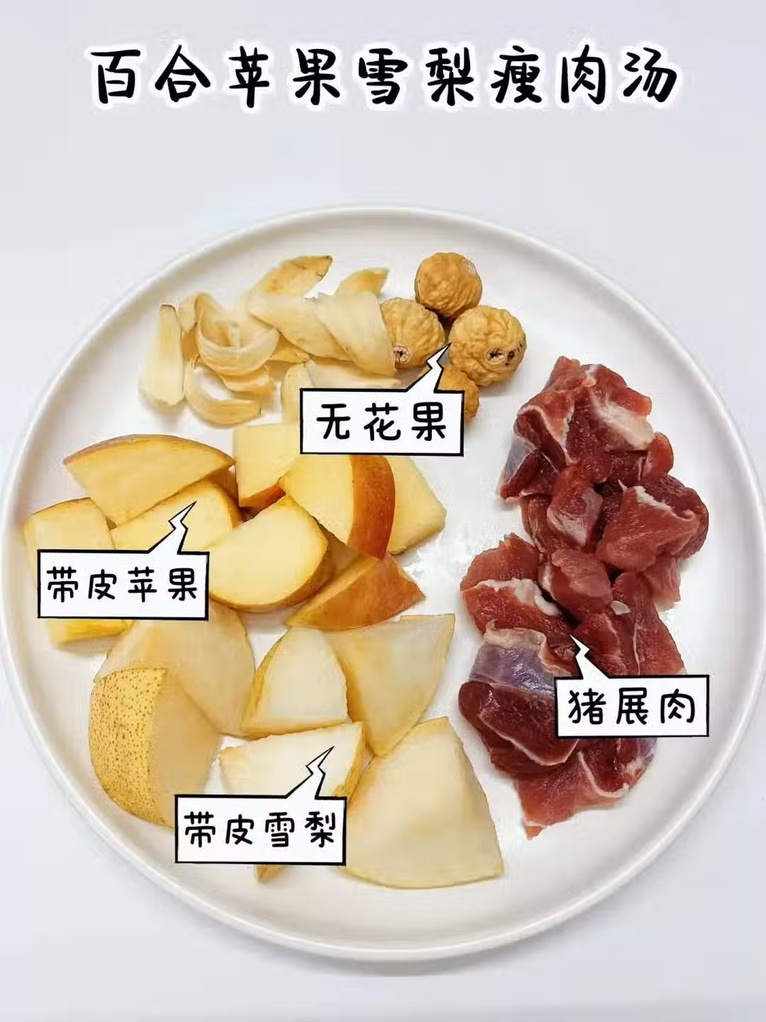 食材準備:雪梨➕瘦肉➕蘋果➕百合➕無花果