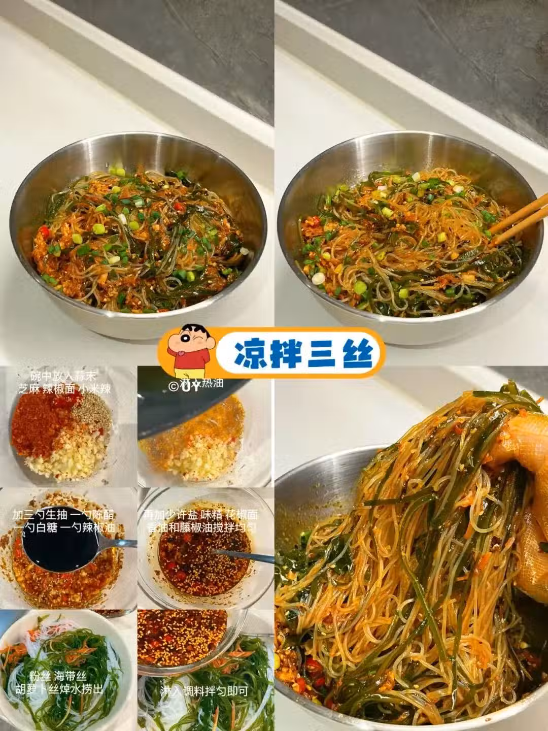 1️⃣粉絲、蘿蔔絲、海帶絲焯水撈出。