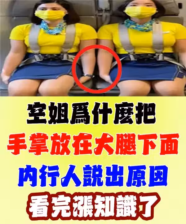 不知道你們在坐飛機的時候有沒有注意觀察過,空姐或空少們在坐在她們的專座摺疊椅上的時候,都是把雙手墊在雙腿之下,坐在自己的雙手上面的。