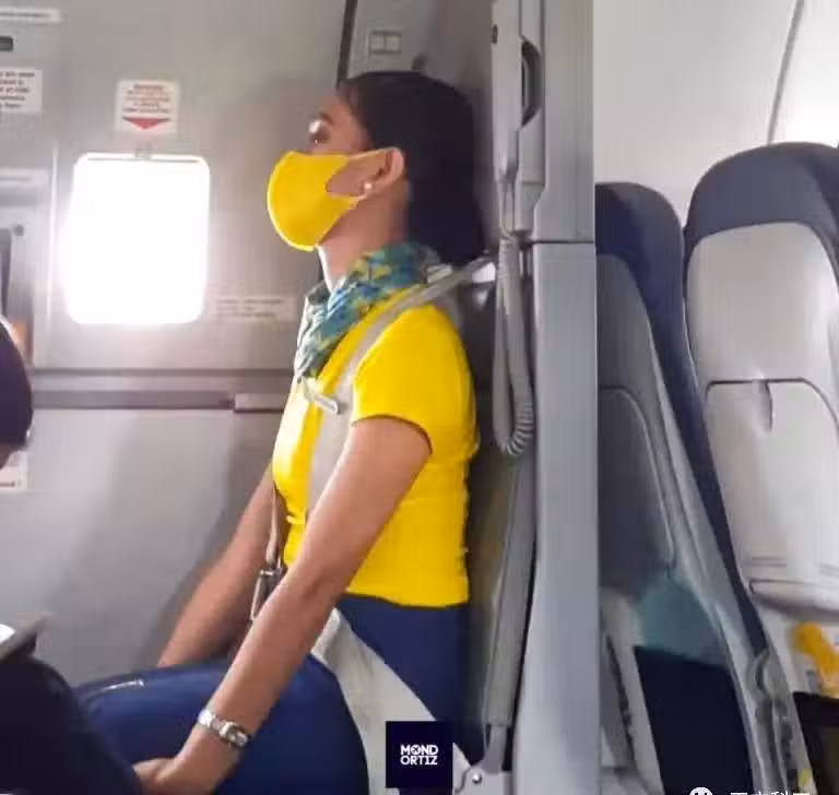 當然這裡空姐坐姿這麼散漫是因為已經落地下客了,可以休息一會兒了,對於面向前方的機組人員來說,還有一種變化,是將下巴傾斜到胸部,以防止頸部扭傷。