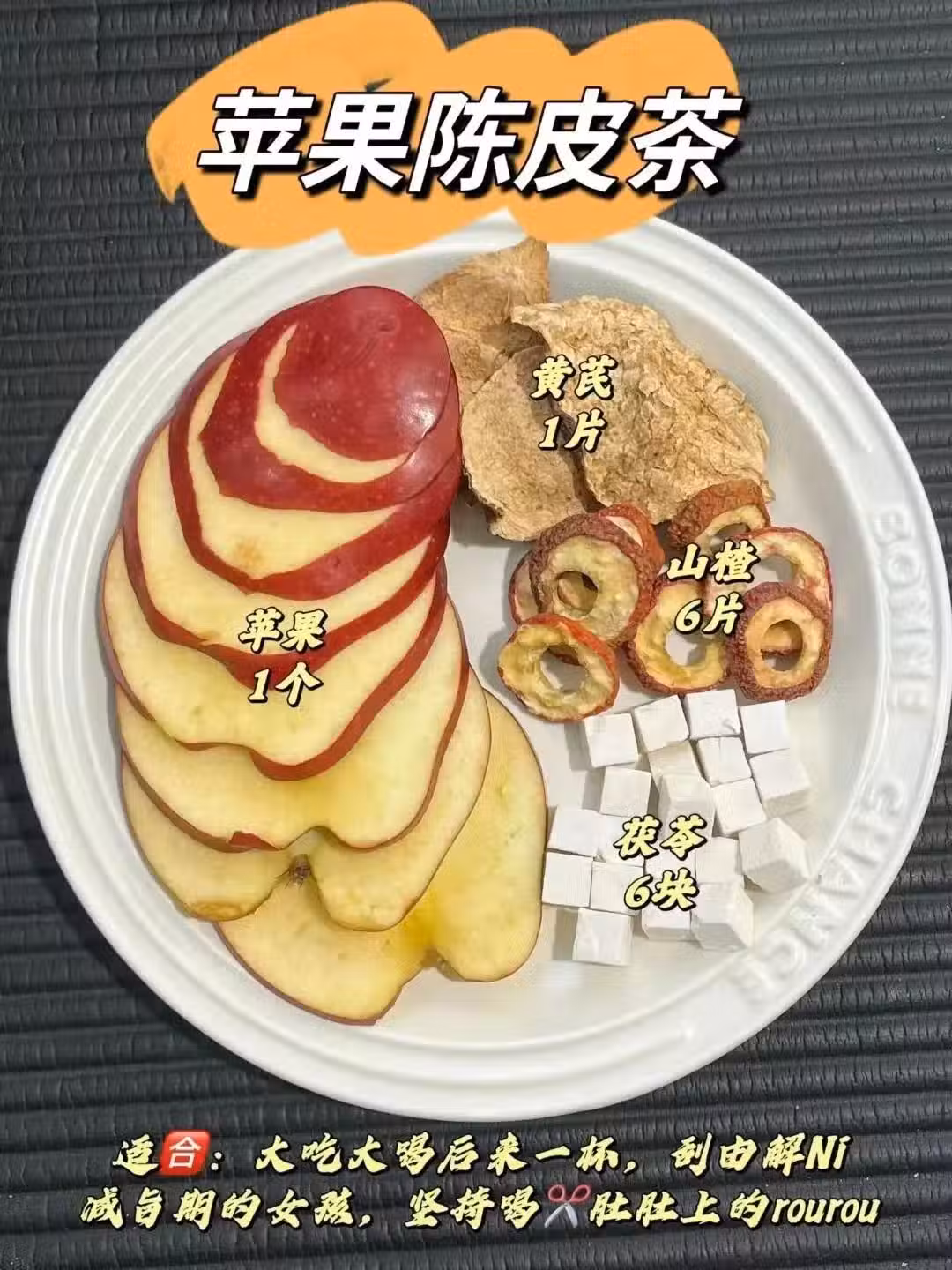 蘋果1個+紅棗3顆+桑葚干6顆+枸杞10粒+玫瑰3朵