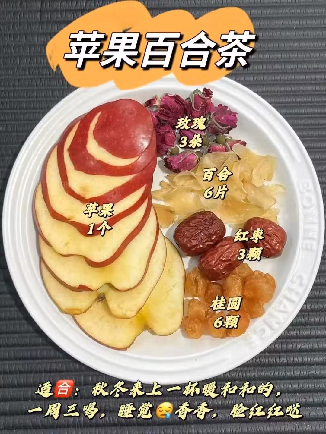 蘋果1個+橙子半個+紅棗3顆