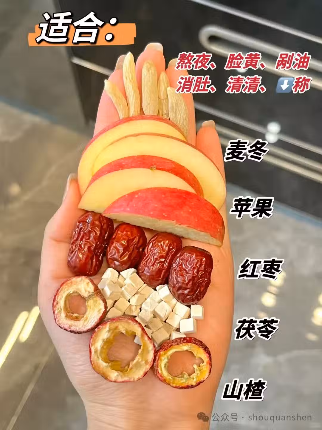 清洗食材:將蘋果、山楂、紅棗、茯苓、麥冬都清洗乾淨。